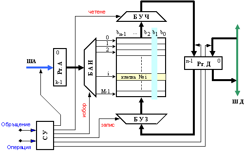 Запомнящи устройства с пряк или директен метод на достъп се представят най-общо като елементи на логическите структури както е показано на фигура 4.2.1.